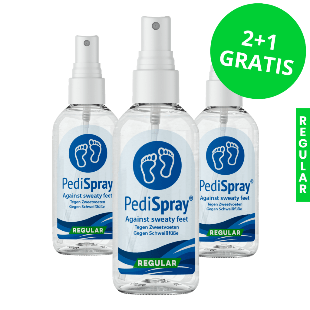 Det snabbaste sättet är att kombinera rätt hygien med ett kraftfullt hjälpmedel. Tvätta fötterna dagligen och torka dem extremt väl. Använd dessutom PediSpray® för att direkt hämma svettproduktionen.